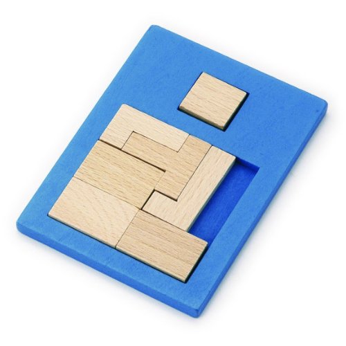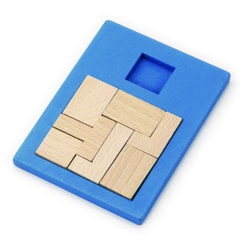 - 木製知育パズルです。ピースを1つ加えてフレームの図形を完成させます。