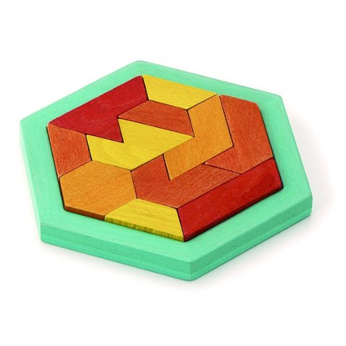 - カラフルな色がかわいらしい木製知育パズルです。11個のパズルピースを6角形のベースにきっちり入れましょう。