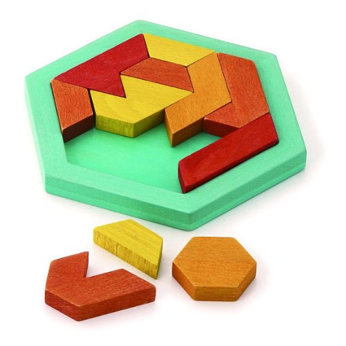 mi TOYのカラフルな色がかわいらしい木製知育パズルです。 11個のパズルピースを6角形のベースにきっちり入れましょう。 パズルピースを使って、いろいろな図形をつくって遊ぶこともできます。 図形あそびの例題もセットになっていますので、挑戦してみてくださいね!