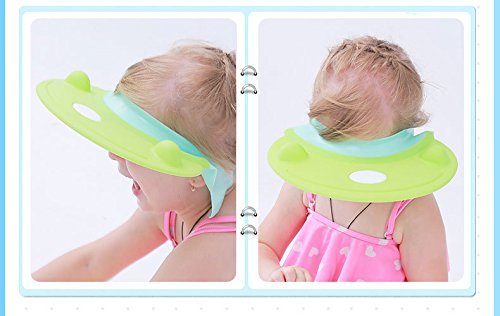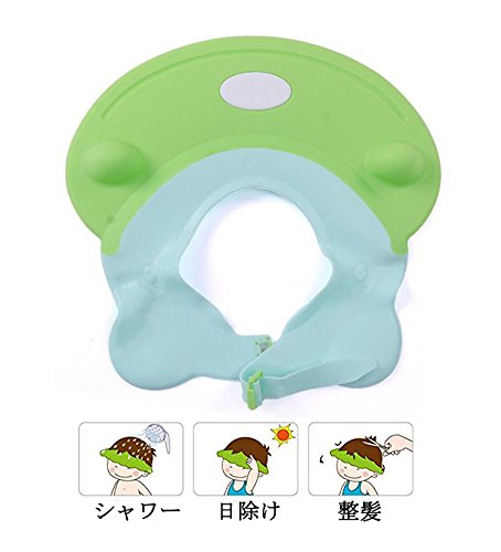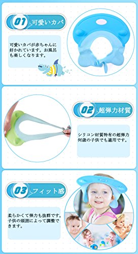 幸せな シャンプーハット かわいい カバ型 洗髪用帽子 ベビー 幼児 赤ちゃん 子供 キッズ シャワーキャップ 耳・目・口保護 顔にかかない 防水帽 サイズ調節可能 お風呂 浴室 アウトドア 海 プール 多機能 日除け 髪カット 頭囲40~52cm 大人でも適用 全3色 (グリーン)