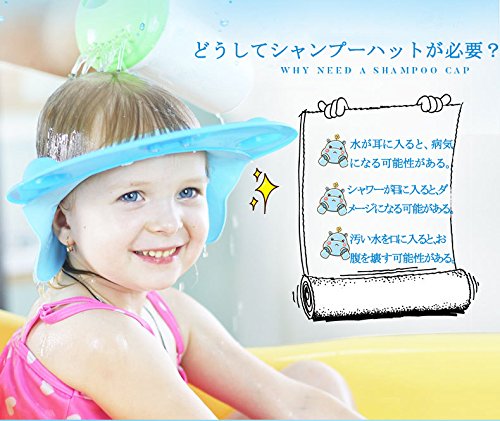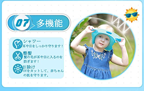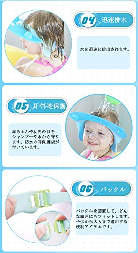 - シャンプーやお湯が顔にかかるのを防ぐ。お母さんが洗ってあげたり、お子様が自分で頭を洗うときの補助具として。