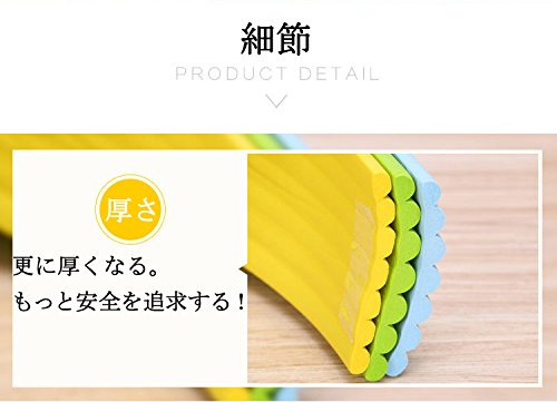 - 厚くて柔らかい発泡ゴム素材 - 衝撃を吸収する柔らかい素材を使用します。高いクッション性で、子供を鋭いダンパー、テーブルなど家具の隅、柱の角から保護します。 設置後に保護者の方の頭や身体を軽くぶつけてみると、柔らかさをご実感いただけるかと思います。