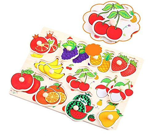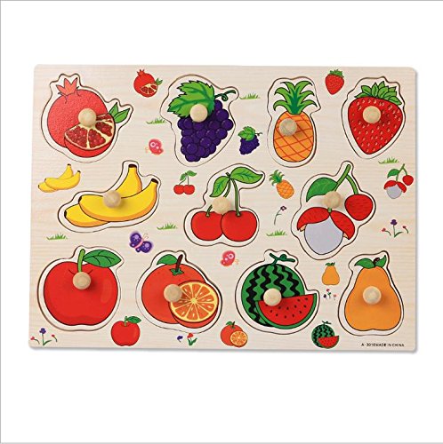 幸せな 木製 はめこみ 形合わせ 子供 知育おもちゃ ハンドル付 パズル 積み木 ブロック 知能開発 幼児 赤ちゃん 教育玩具 視覚・大脳・言語・好奇心・集中力 活性化 数学・英語・幾何学 脳トレ 親子ゲーム 無毒性 異臭無し プレセント お祝い 全21種類 (果物Bタイプ)
