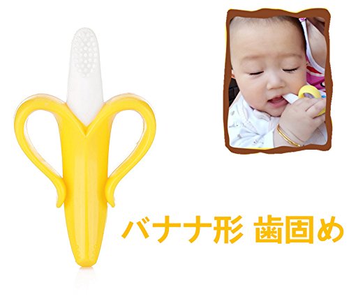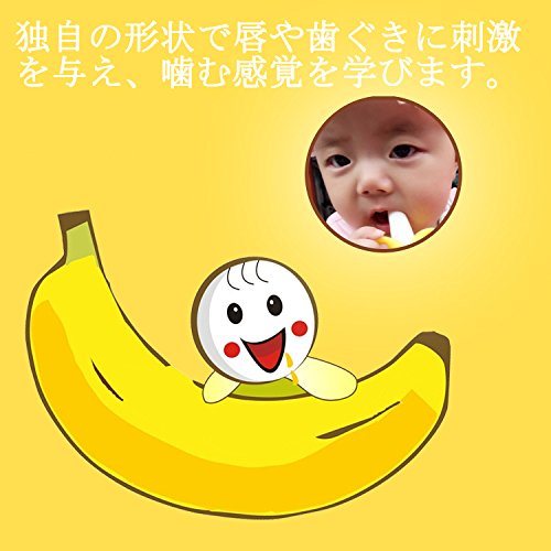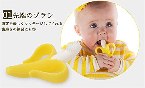 - 製品について:かわいいバナナの形で、食べ物に興味を持ち出した赤ちゃんにぴったりの歯がためです。先端がブラシのようになっており、歯茎を優しくマッサージしてくれるのが特徴。噛む・なめるトレーニングとしてだけでなく、歯磨きの練習にもなりますよ。バナナの皮部分がストッパーとして作用するので、口の奥まで歯がためが入ってしまう心配もありません。
