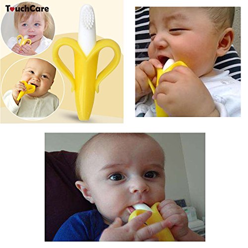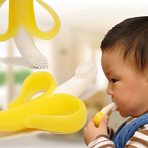 幸せな 歯がため バナナ形 先端がブラシ 歯磨きトレーニング かわいい シリコン製 (3ヶ月から対象) 赤ちゃん ベビー 噛む おしゃぶり 無毒性 不安・ストレス解消 乳歯の成長をサポート 識別力・認識力を養う 大脳活性化 お祝い プレゼント