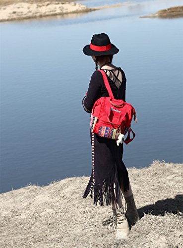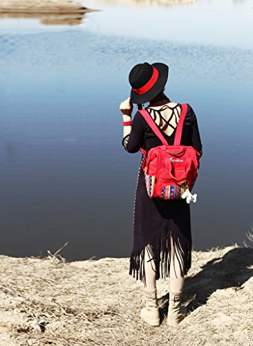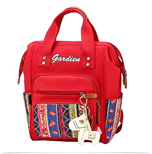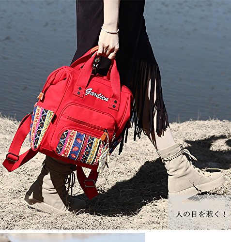 幸せな リュック 民族柄 保温ポーチ付き ポケットが多い かわいいストラップ付き 大容量 軽量 人気 多機能 安全性 大きな開く 【フロントポケット/サイドポケット/メインポケット】全3色 (赤色)