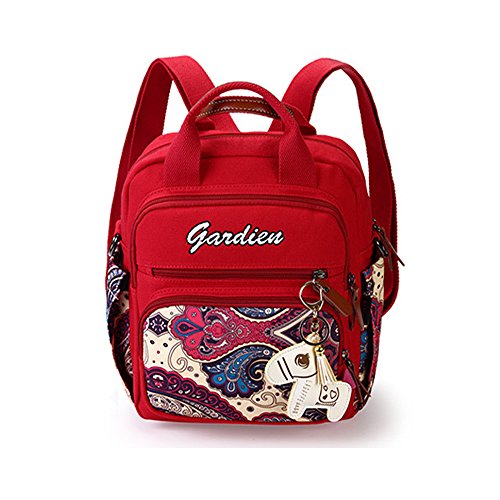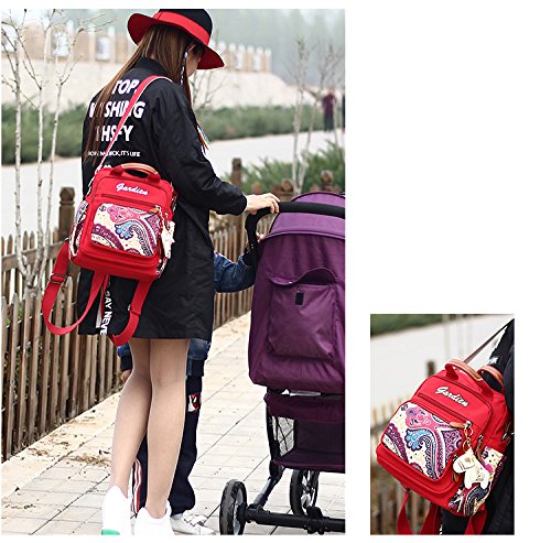 幸せな リュックサック トートバッグ マザーズバッグ 2WAY 民族柄 保温ポーチ付き 差し色 おしゃれ エスニック ポケットが多い ティッシュ専用ポケット 大容量 可愛いストラップ付 軽量 コンパクトサイズ お祝い プレゼント 全3色 (赤色)
