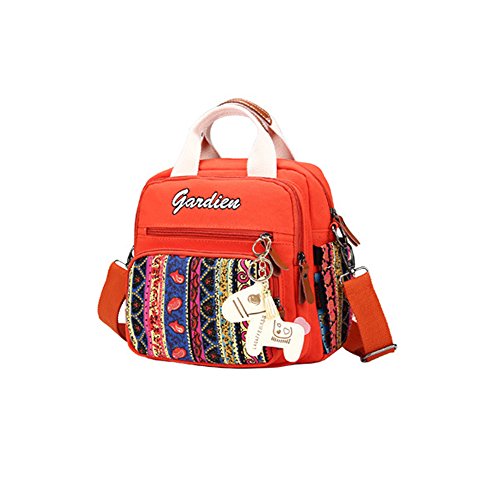 幸せな 3WAYバッグ リュックサック ショルダーバッグ トートバッグ 民族柄 エスニック 保温ポーチ付き ポケットが多い 可愛いストラップ付 軽量 コンパクトサイズ お祝い プレゼント 全3色 (橙色)