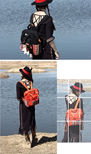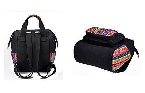 幸せな リュック 民族柄 保温ポーチ付き ポケットが多い かわいいストラップ付き 大容量 軽量 人気 多機能 安全性 大きな開く 【フロントポケット/サイドポケット/メインポケット】全3色 (黒色)