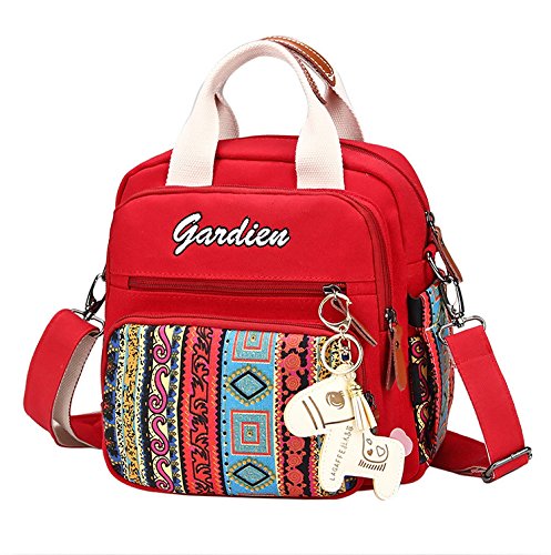 幸せな 3WAYバッグ リュックサック ショルダーバッグ トートバッグ 民族柄 エスニック 保温ポーチ付き ポケットが多い 可愛いストラップ付 軽量 コンパクトサイズ お祝い プレゼント 全3色 (赤色)