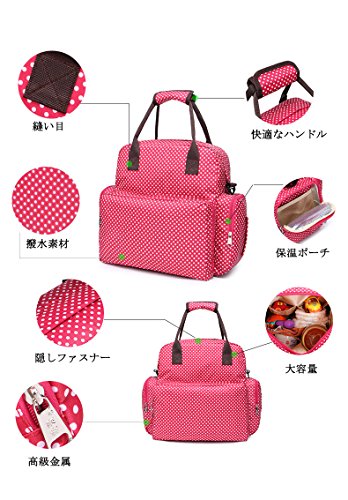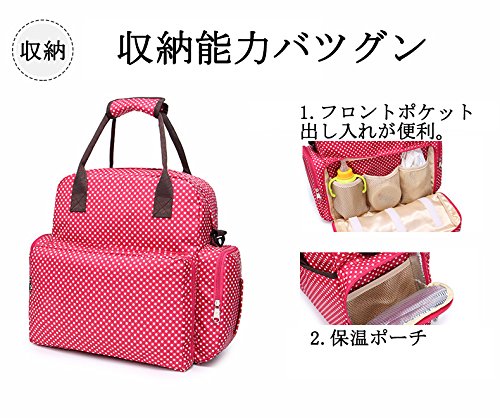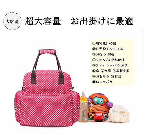 幸せな 超大容量 マザーズバッグ リュック ドット柄 おむつ替えマット 保温ポーチ 防水 3WAY ショルダーバッグ・ハンドバッグ・リュックサック 調節可能ベルト 人気 便利 大きな開く 安全性 多機能 お祝い 出産 プレゼント (ベージュ)