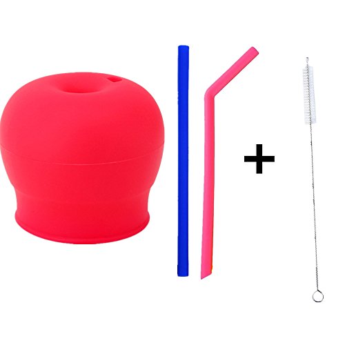 幸せな シリコンコップカバー セット ストロー付き 専用ブラシ付き こぼれない 漏れない シリコン蓋 シリコンキャップ 子供用 年寄り 安全 衛生 全5色 (ローズ)