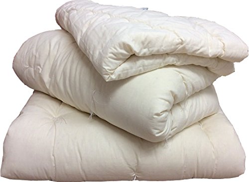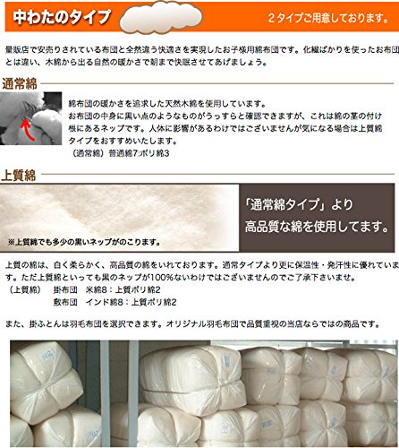 掛・敷布団はともに軽く、保湿性、吸湿性を高めるためにポリエステル綿を混ぜた混綿となります。
