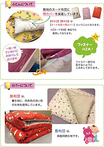 ○お子様が自分のふとんとわかりやすいように柄をカバーにいたしました。市販されてる布団カバーとは違い、ふとん生地ですので丈夫で何度も洗濯されてもしっかりしています。