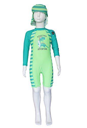 Bonverano ベビー水着 男の子 ワンピース キャップ付き 長袖 UPF50+紫外線対策 UVカット