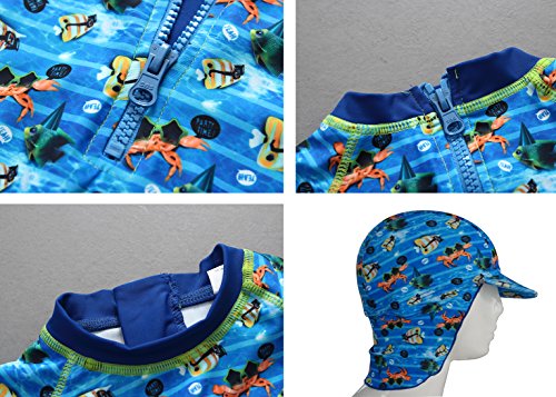 Bonverano ベビー水着 男の子 ワンピース キャップ付き 長袖 UPF50+紫外線対策 UVカット
