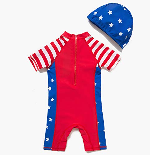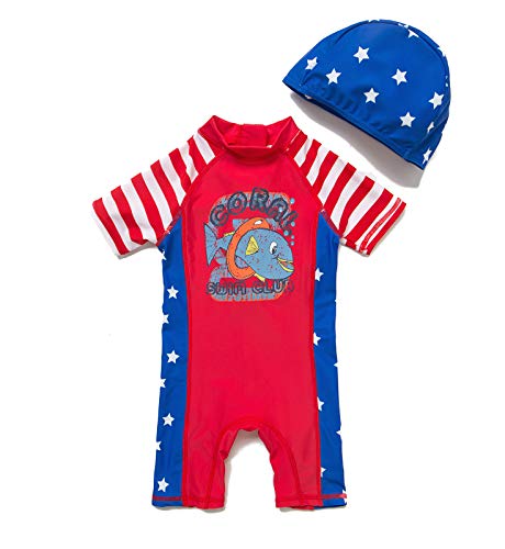 Bonverano ベビー水着 男の子 ワンピース 半袖ラッシュガード キャップ付き 2点セット UPF50+ 紫外線対策 UVカット