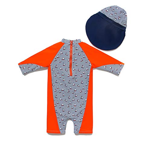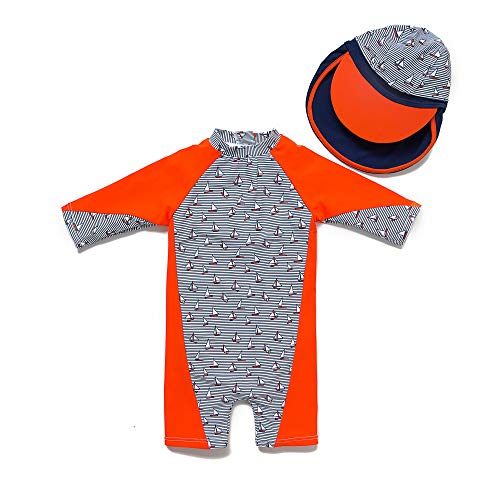 Bonverano ベビー水着 男の子 ワンピース 半袖ラッシュガード キャップ付き 2点セット UPF50+ 紫外線対策 UVカット
