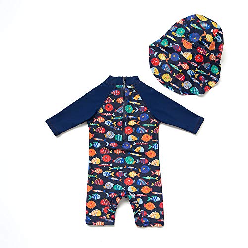 Bonverano ベビー水着 男の子 ワンピース 半袖ラッシュガード キャップ付き 2点セット UPF50+ 紫外線対策 UVカット