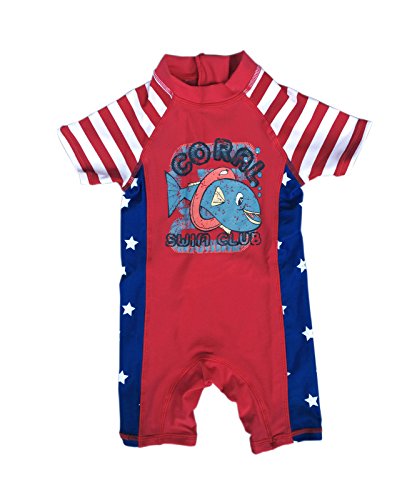 Bonverano ベビー水着 男の子 ワンピース 半袖ラッシュガード キャップ付き 2点セット UPF50+ 紫外線対策 UVカット