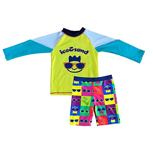 Bonverano ベビー水着 男の子 長袖 ラッシュガード キャップ付き UPF50+ UVカット セパレート 3点セット(RYFT02-12-18M)