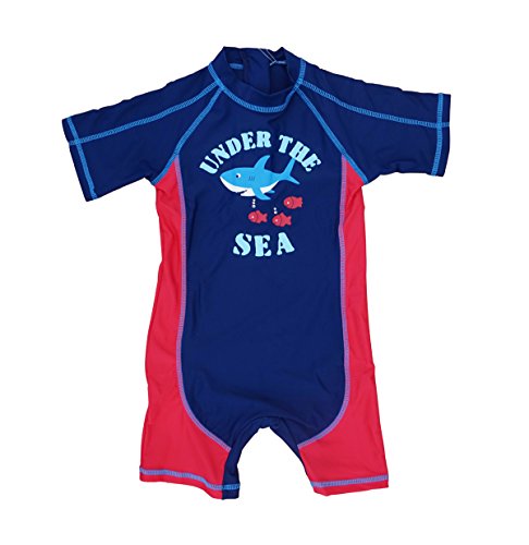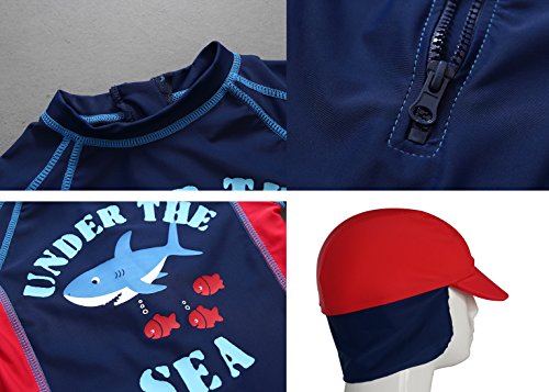 Bonverano ベビー水着 男の子 ワンピース 半袖ラッシュガード キャップ付き 2点セット UPF50+ 紫外線対策 UVカット(6-9M サメ)