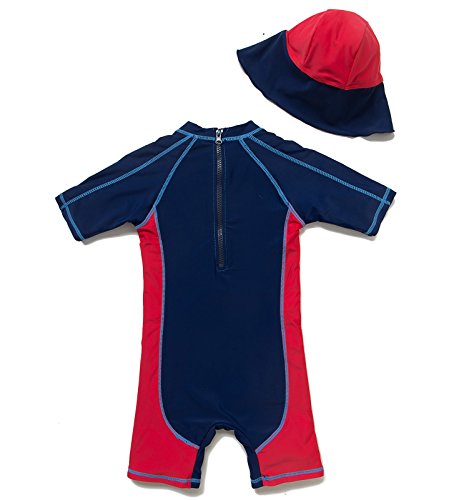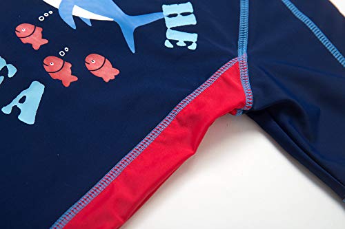 Bonverano ベビー水着 男の子 ワンピース 半袖ラッシュガード キャップ付き 2点セット UPF50+ 紫外線対策 UVカット(9-12M サメ)