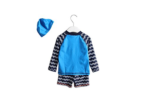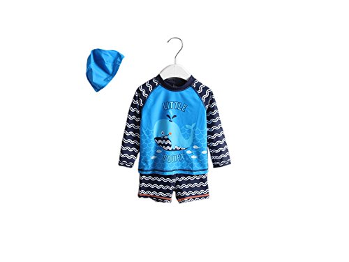 Bonverano 水着 男の子 ラッシュガード 長袖トップス ハーフパンツ セパレート キャップ付 UVカット 三点セット(RYFT06-4T)