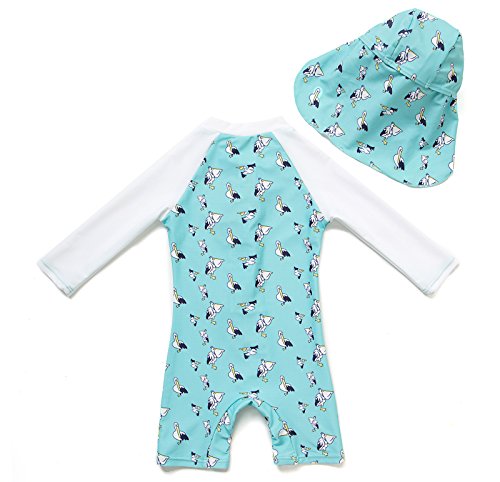 Bonverano(ボンワーラノ) ラッシュガード ベビー 男の子 長袖 ワンピース 紫外線対策 UVカット 水着 UPF50+ キャップ付き 二点セット スイムウェア ボーイ(9-12M)