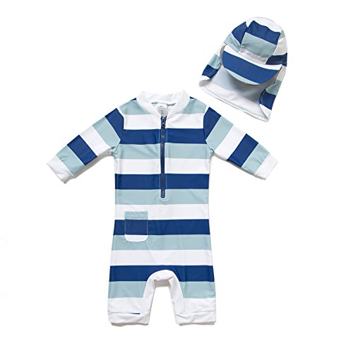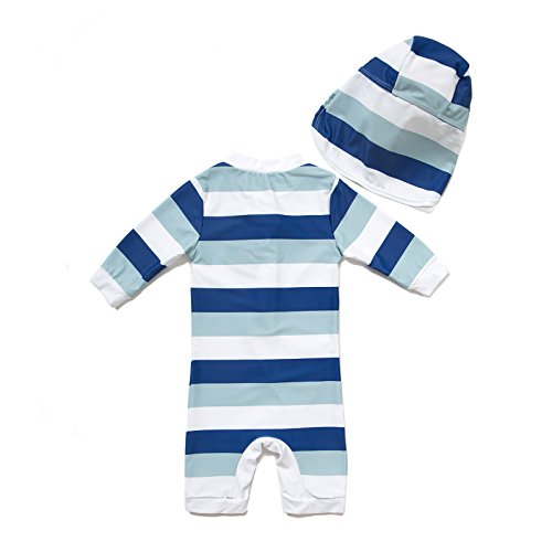 Bonverano(ボンワーラノ) ラッシュガード ベビー 男の子 長袖 ワンピース 紫外線対策 UVカット 水着 UPF50+ キャップ付き 二点セット スイムウェア ボーイ(24-36M)