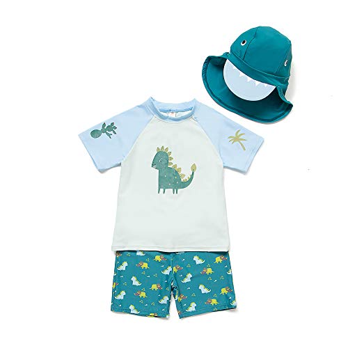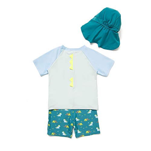 Bonverano ラッシュガード 男の子 半袖 セパレート 紫外線対策 UVカット 水着 UPF50+ キャップ付き 三点セット (恐竜, 5T)