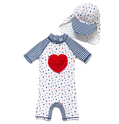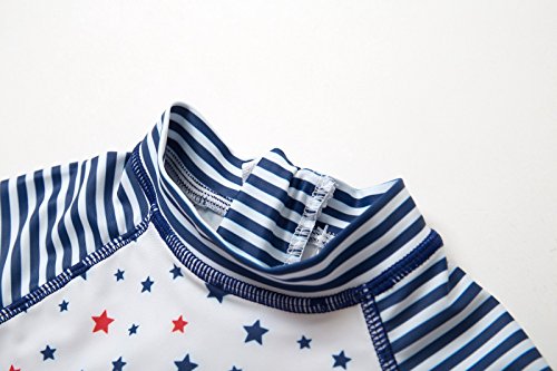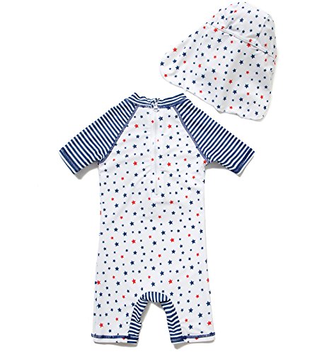 Bonverano(ボンワーラノ) ラッシュガード ベビー 男の子 半袖 ワンピース 紫外線対策 UVカット 水着 UPF50+ キャップ付き 二点セット スイムウェア ボーイ (星(白), 6-9M)
