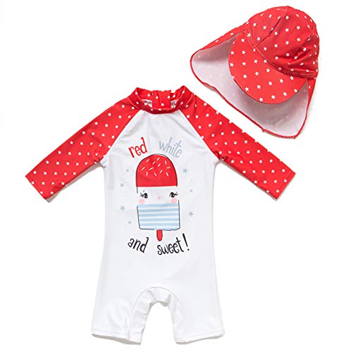 Bonverano ラッシュガード ベビー 女の子 半袖 ワンピース UVカット 水着 キャップ付き 二点セット(18049-18-24M)