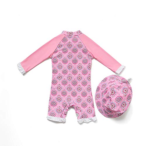Bonverano ラッシュガード ベビー 女の子 長袖 ワンピース UVカット 水着 キャップ付き 二点セット(18007-9-12M)