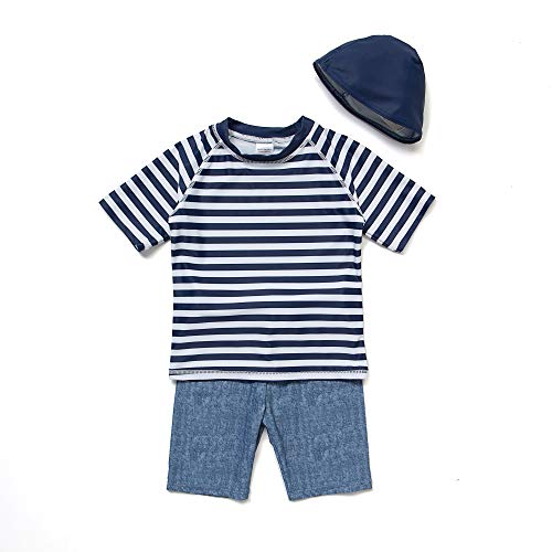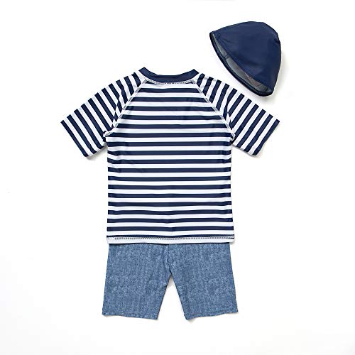 Bonverano 水着 男の子 ラッシュガード 半袖トップス ハーフパンツ セパレート キャップ付 UVカット 三点セット(RYFT13-4)