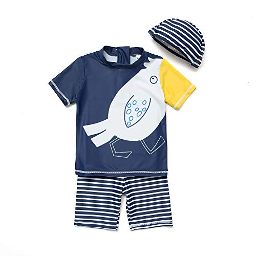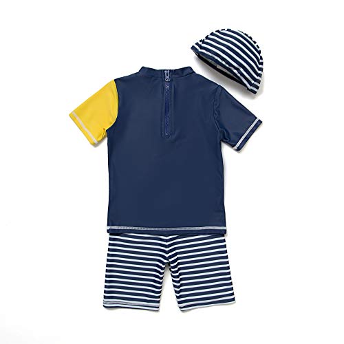 Bonverano 水着 男の子 ラッシュガード 半袖トップス ハーフパンツ セパレート キャップ付 UVカット 三点セット(RYFT18-3)