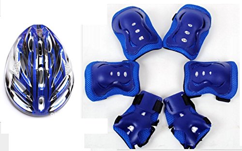 手首 を ガード 肘 を ガード 膝 を ガード 頭 も ガード これで安心 子供 用 プロテクター ヘルメット セット (ブルー プロテクター+ヘルメット)