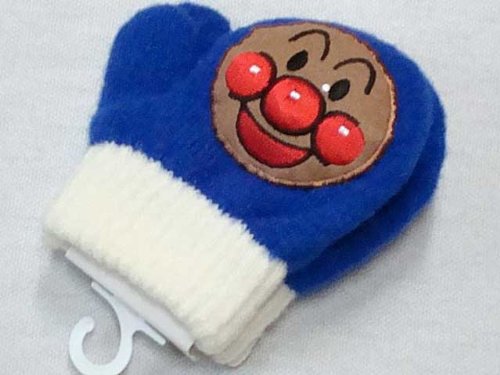 アンパンマン 笛付 のびのび 顔刺繍 ニットミトン ブルー フリー