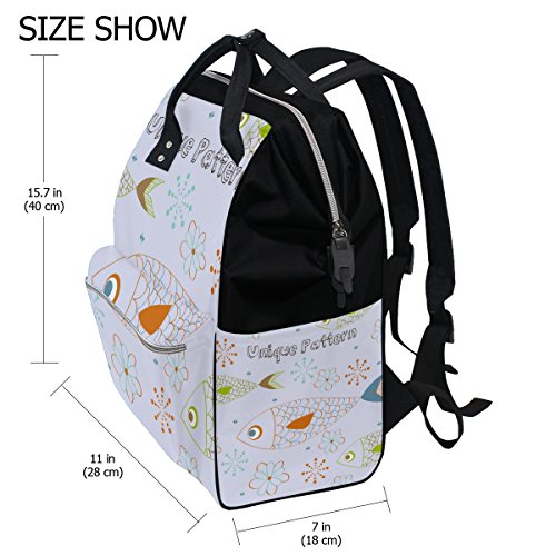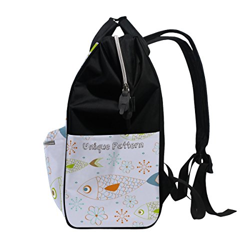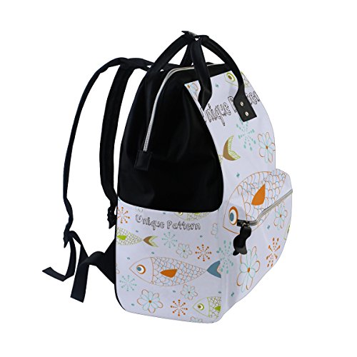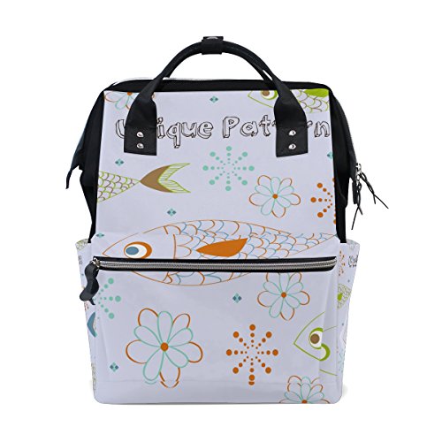 ママバッグ マザーズバッグ リュックサック ハンドバッグ 旅行用 魚と花柄 手描き ファション