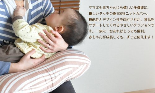 小さな赤ちゃんでも、出産後のママが赤ちゃんを長時間抱えているのは意外と重労働。授乳クッションを使えば、クッションが赤ちゃんの体重を支えてくれるので、ママの腕や肩に負担をかけずに楽に授乳できるんです。 肩や腕に力が入りすぎたり、前にかがみ過ぎたり、無理な体勢での授乳を防止してくれるので、腰痛や肩こりなどに悩んでいるママには是非お勧めいたします! ママにも赤ちゃんにも嬉しい多機能に、優しいタッチの綿100%ニットカバー。機能性とデザイン性を両立させた、育児をサポートしてくれるやさしいクッションです。