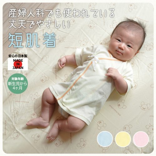 日本製 産婦人科で使われている 短肌着 50-60cm (サックス)