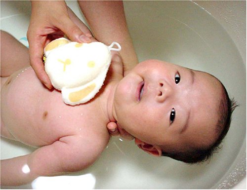 やわらかくてふわふわのスポンジは新生児の沐浴から使え、スポンジの入っていない部分(耳等)で赤ちゃんのくびれたところも優しく洗ってあげられます。