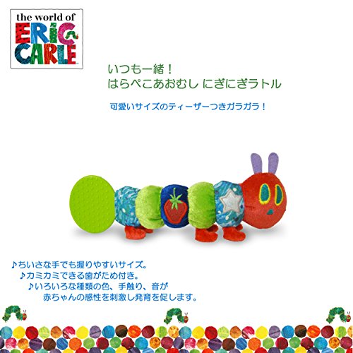 ・'はらぺこあおむし'のかわいいサイズのティーザー付きガラガラ♪・ちいさな手でも握りやすいサイズ。・カミカミできる歯がため付き。・いろんな種類の色、感触、音が赤ちゃんの感性を刺激し発育を促します。