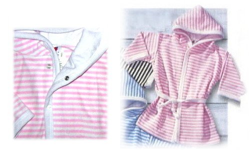 - マリンバスローブ(ピンク)サイズ74~80 胸にスナップボタン2個付き、帯紐はベルト式。