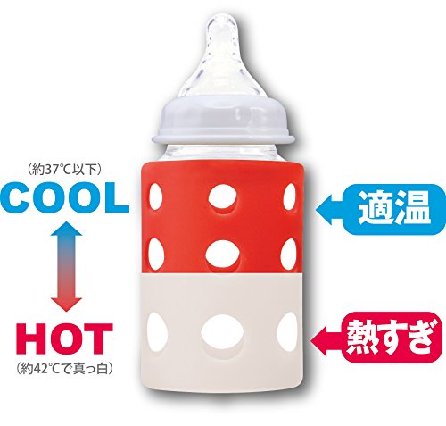 哺乳瓶カバー 見てわかるミルクの最適温度 約42度以上(37.3度以上で白くなり始める)をかんじると白く色が変わります。 シリコン素材で哺乳瓶を持ちやすくサポート