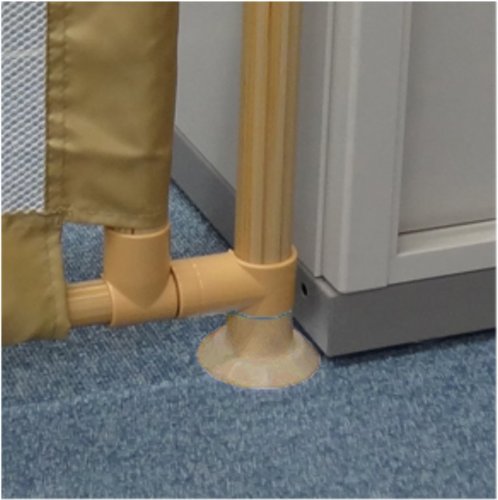 ・床と天井を突っ張り固定するので、テレビの前や部屋の真ん中など、壁がなくても付けられます。
