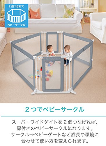 ・スーパーワイドゲイトを2個つなげれば、扉付きのベビーサークルになります。サークル→ベビーゲートなど成長や環境に合わせて使い方を変えられます。