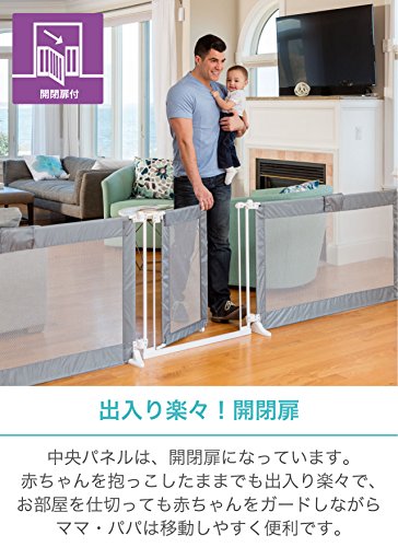 日本育児 ベビーゲート スーパーワイドゲイト グレー 6ヶ月~24ヶ月対象 最大358cmもの広い間口に対応した開閉式ゲート