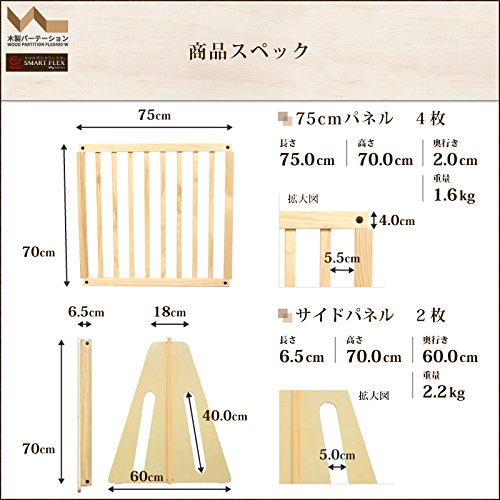 - セット内容:扉パネル×1、拡張パネル75cm×4、エンドパネル×2、スタンドフレーム×2、ジョイント(上)×6、ジョイント(下)×6、補助スタンド×4、補助スタンドカバー×4