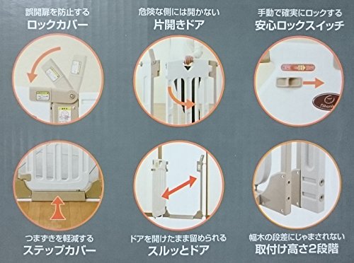階段上にバリアを張って赤ちゃんをしっかりガード!どんなところにもマッチするインテリア調のデザイン!●手動で確実にロックする”安心ロックスイッチ”●ネジ止めでしっかり固定!●ドアを開けたまま留められる”スルッとドア”●幅木の段差に邪魔されない”取り付け2段ポジション”●つまづきを軽減する”ステップカバー”●開閉は簡単、危険な側には開かない”片開きドア”●ペット用としても大好評!●取付幅:67~83cm(階段上:69~85cm)まで可能!